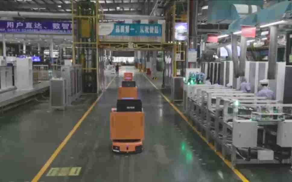 为车载冰箱物流配送打造的智能解决方案,,包含产中物流通过潜伏举升AMR搬运至线边,,,产后成品物流智能仓储,,,,流程包含产中物流智能齐套入库,,线边安灯叫料AMR智能配送至线边,,成品入库、、、出库,,,通过无人堆高车机器人,,,智能仓储管理替代人工作业管理,,,,实现更高存储、、更高效率、、更具柔性化的解决方案。。。。