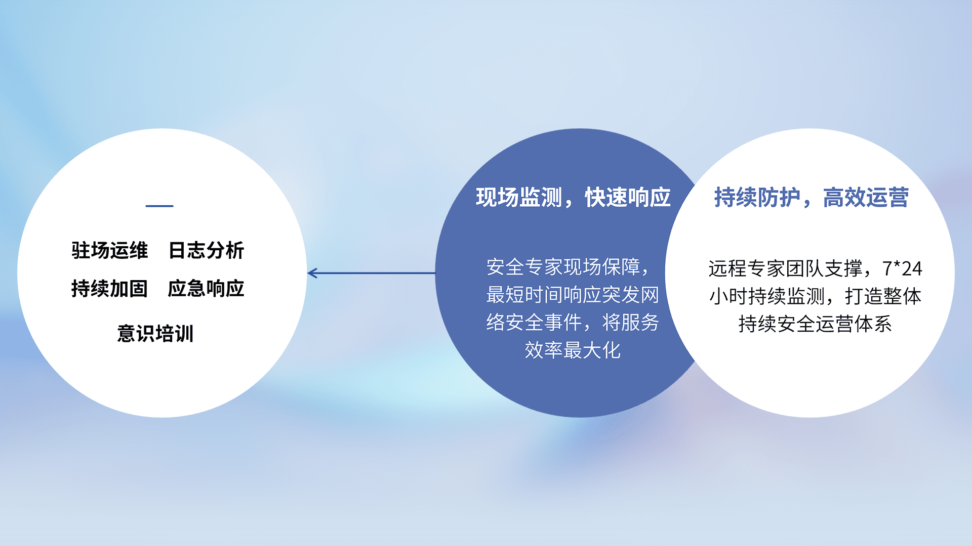 针对客户行业特性,,提供专属的一站式安全管理服务,,,,帮助客户全面感知网络空间威胁,,,,通过安全专家的线上、、线下防护支持,,,实现风险闭环,,,将安全保障常态化,,,为客户打造常态化安全运维运营服务。。